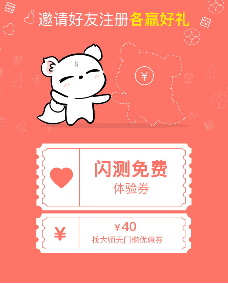 1、邀请好友完成注册即可获得闪测免费体验券、详测无门槛抵扣券,好友完成注册可获得200元新用户大礼包。